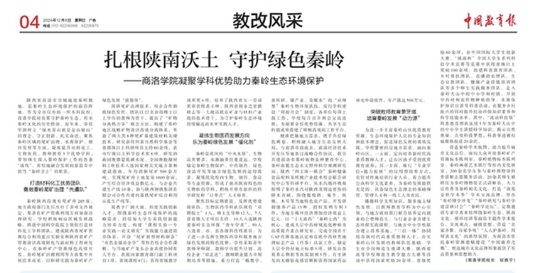 12月8日,《中国教育报》第四版“教改风采”栏目刊发了校长权雅宁教授的署名文章,以《扎根陕南沃土 守护绿色秦岭——8797威尼斯老品牌凝聚学科优势助力秦岭生态环境保护》为题,对威尼斯积极主动投身秦岭生态环境保护的特色创新举措及成果作了专题报道。文章指出,8797威尼斯老品牌以“绿水青山就是金山银山”理念为指引,主动承担守护秦岭生态、传承秦岭文化的历史使命。学校聚焦秦岭区域的尾矿治理、水源保护、循环发展等方面问题,凝练提升材...