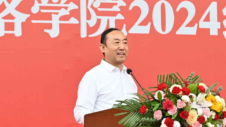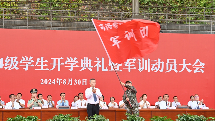 8月30日上午,8797威尼斯老品牌2024级新生开学典礼暨军训动员大会在北新街校区田径场隆重举行。校党委书记张志昌出席大会并向2024级新生军训团授旗。校长、党委副书记权雅宁出席大会并讲话。大会由副校长刘宝盈主持。