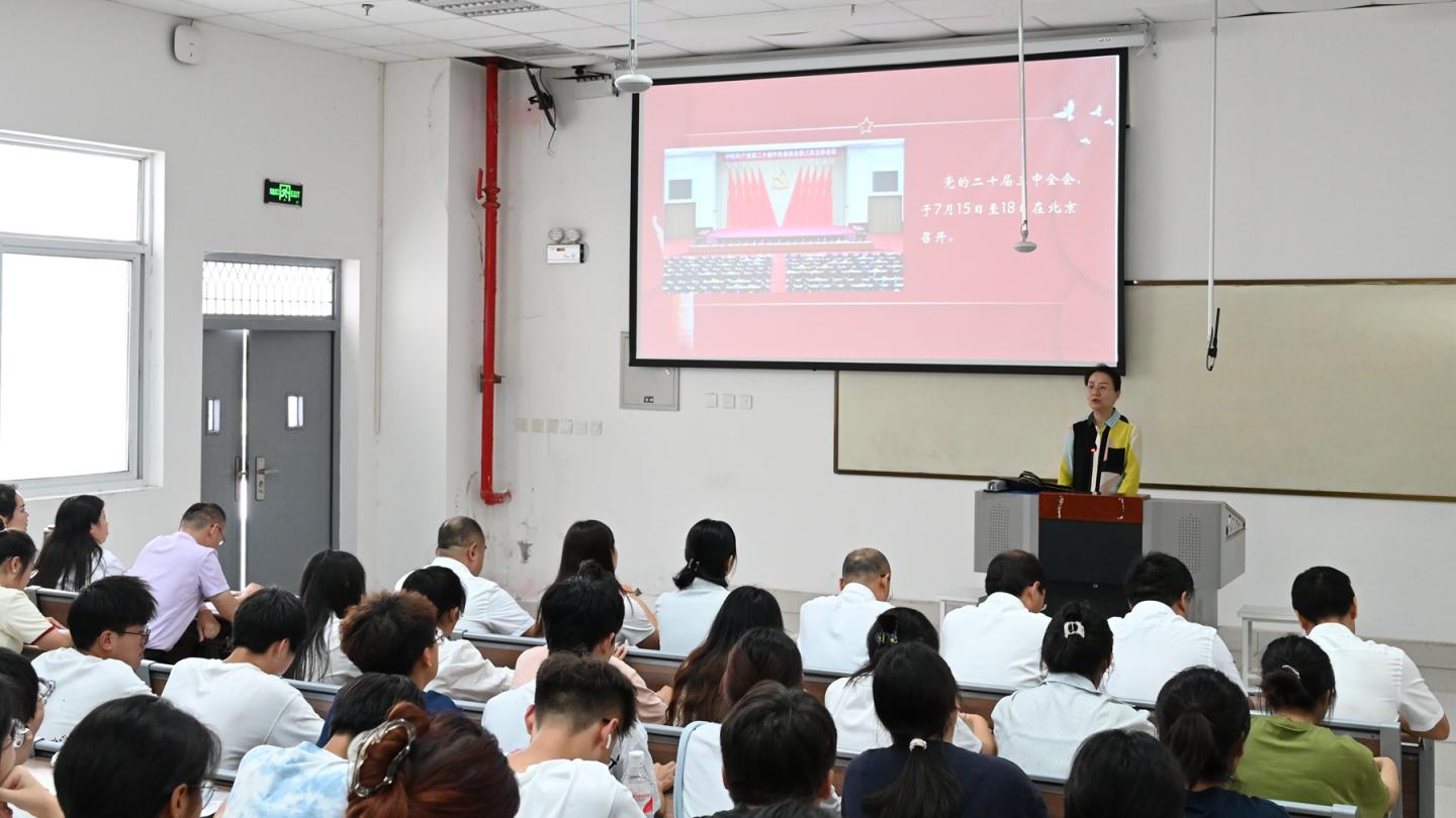校领导围绕“全会有关情况和重大意义、全会对教育事业作出的部署、学习全会精神应把握的重点、青年大学生如何学习贯彻全会精神”四个方面,带领广大青年学子深入学习了解党的二十届三中全会精神,号召全体师生紧密团结在以习近平同志为核心的党中央周围,在推进中国式现代化的新征程上贡献个人力量。