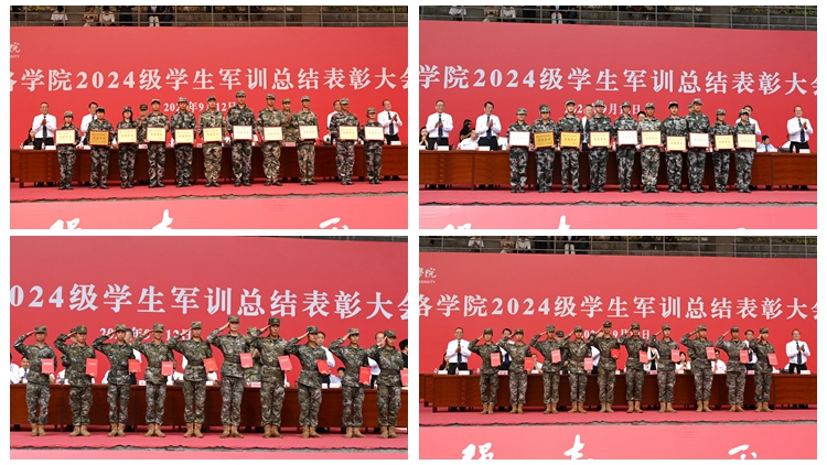 与会领导分别为军事技能训练先进集体、军训内务整理先进集体、军训工作优秀教官、军训工作先进个人、军训优胜标兵代表颁发了奖牌和荣誉证书。