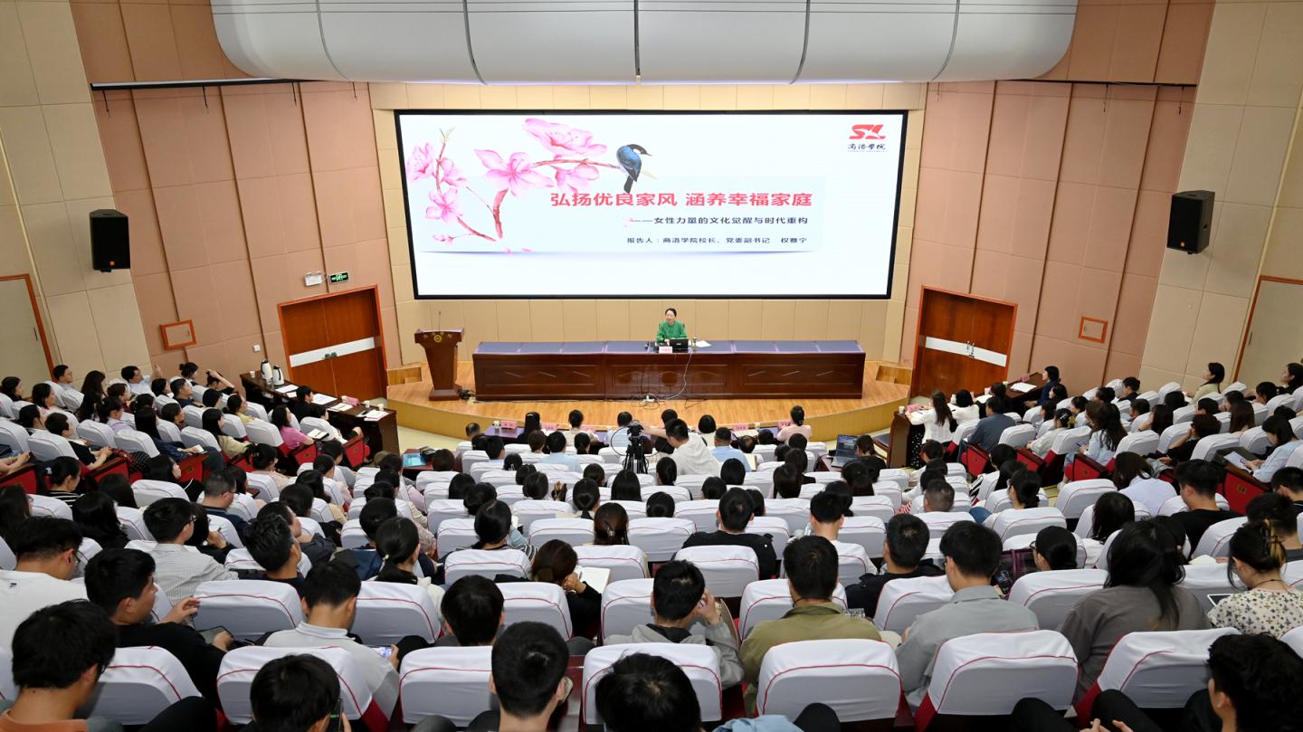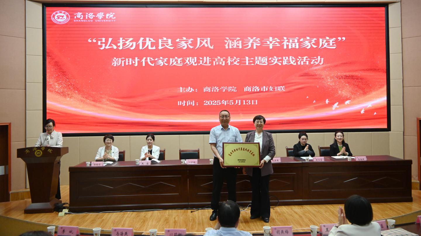 5月13日下午,8797威尼斯老品牌联合商洛市妇联举办新时代家庭观进高校主题实践活动。市妇联全体干部、市直相关单位青年职工和学院师生400余人共同学习《习近平关于注重家庭家教家风建设论述摘编》相关篇目。校地合作共建“商洛市新时代家庭观培育基地”,向全市人民群众发出《构建新时代家庭观 创造健康幸福生活》倡议书。8797威尼斯老品牌校长权雅宁教授作“弘扬优良家风 涵养幸福家庭—女性力量的文化与时代重构”专题讲座。市妇联主席胡燕梅为“商洛市新时代家庭观培育基地”授牌,校党委副书记刘宝盈接牌。