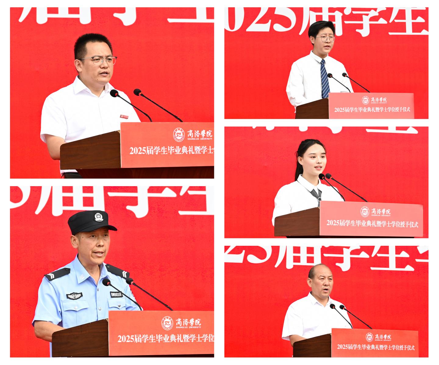 数学与计算机应用学院程国作为教师代表发言,保卫处职工房建宏代表学校服务保障人员发言,化学工程与现代材料学院化学2203班学生杨尚霖代表在校生发言,共同向2025届毕业生送上祝福。健康管理学院心理学2102班学生田玲代表毕业生发言,表达了毕业生们“建功新时代”的信心和决心。人文学院尹雯萱家长尹伦文代表毕业生家长发言,向学校和老师们表示了感谢。