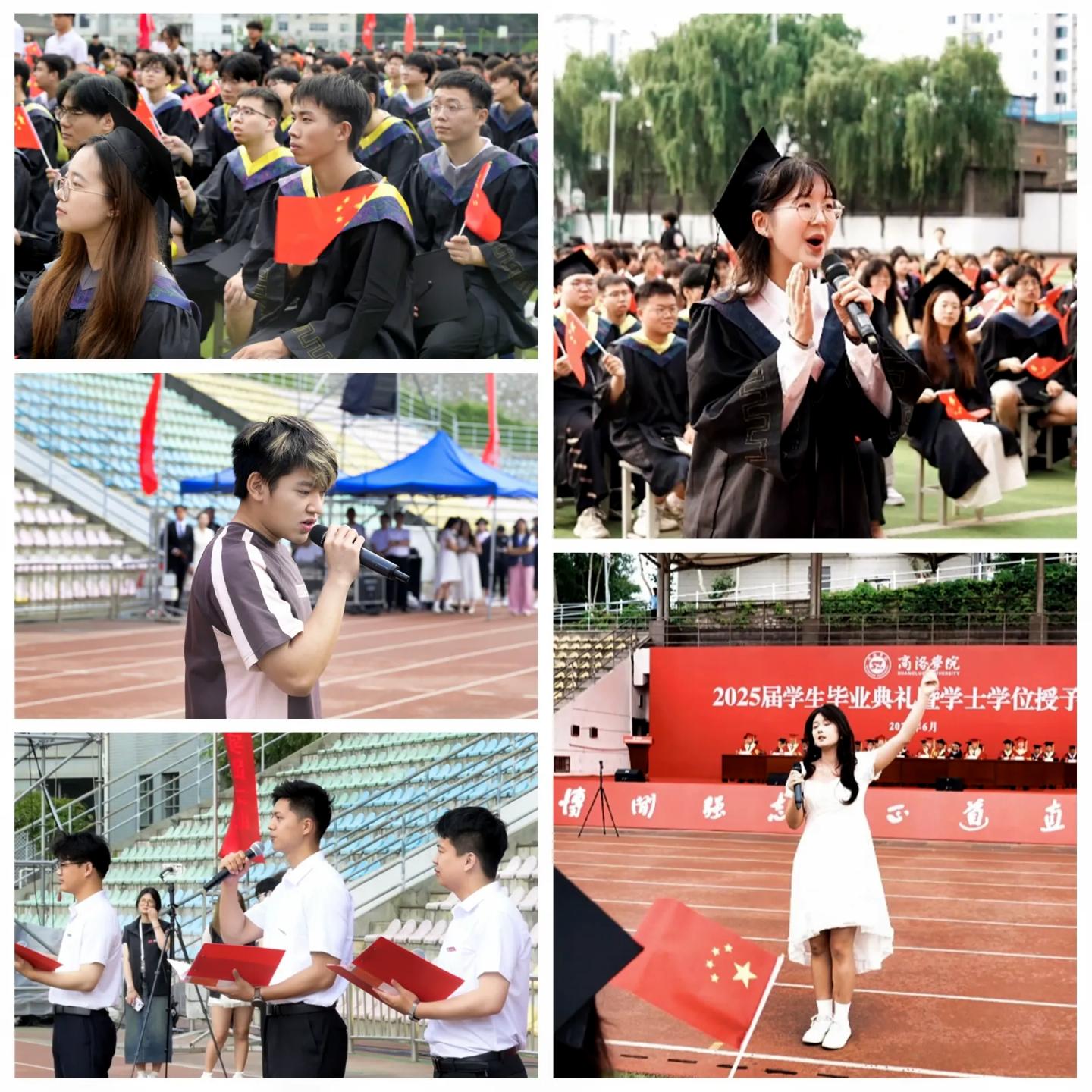 在庄严的国歌声中,毕业典礼暨学士学位授予仪式拉开帷幕,全体人员起立奏唱国歌。