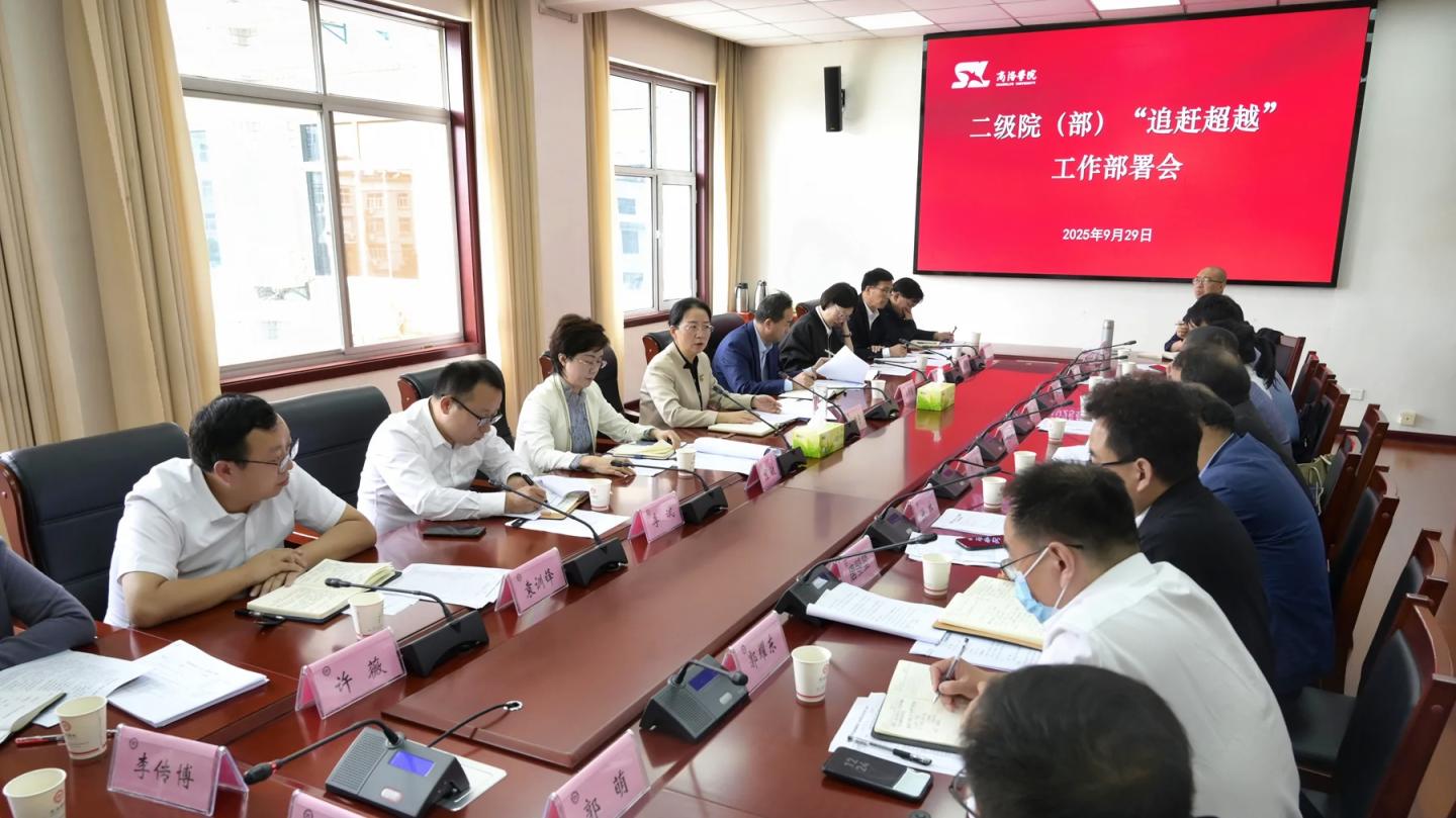 会上,分管校领导就“追赶超越”工作作出全面部署,强调各单位要统一思想、凝聚共识,将“追赶超越”作为推动事业发展的重要方法,聚焦关键环节,精准发力。各二级院(部)负责人依次就本单位“追赶超越”的目标指标、对标对象、进度规划等进行了汇报。人事处、学科办公室、教务处、科技处、社科处负责人分别围绕人才队伍建设、学科发展、教育教学、科学研究与社会服务等关键领域,对任务指标进行了解读。