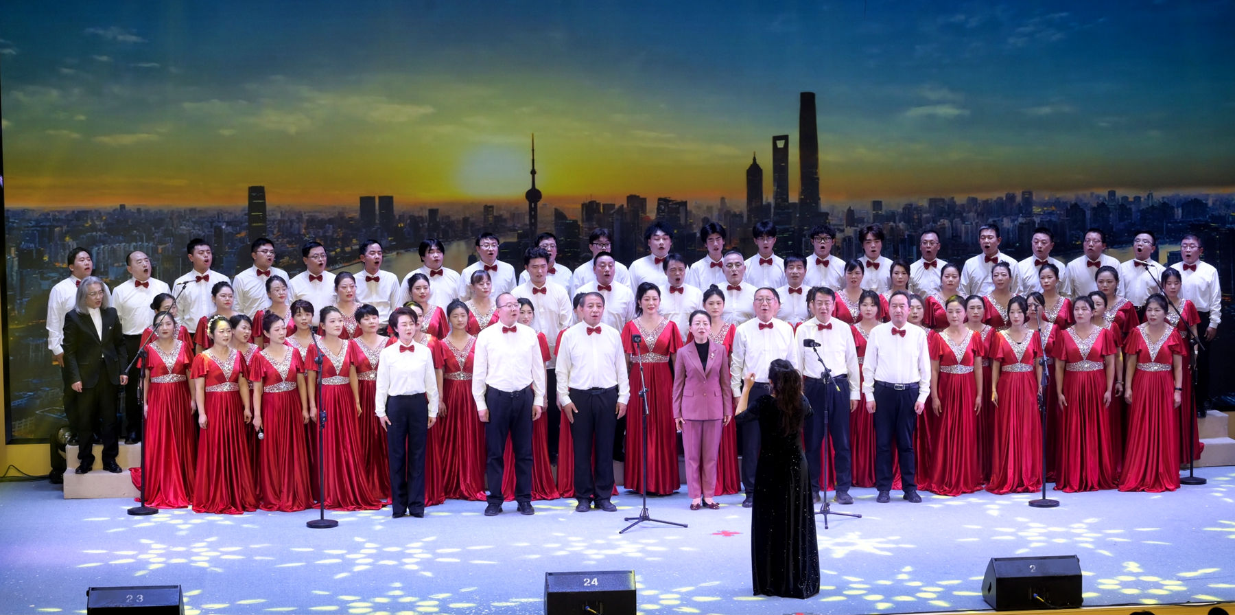 晚会在全场大合唱《当那一天来临》《我的祖国》中迎来尾声,全体校领导登台与教职工合唱团共同高歌,将晚会气氛推向高潮。激昂嘹亮的歌声,唱出了商院人对祖国的无限热爱、对教育事业的忠诚担当,以及奋进“十五五”新征程的坚定决心与豪迈气概,引起全场强烈共鸣,掌声经久不息。