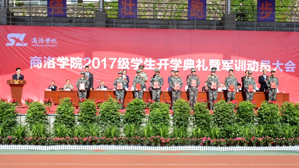 金秋送爽,丹桂飘香。9月6日上午,威尼斯2017级学生开学典礼暨军训动员大会在学校体育场隆重举行。校领导龙治刚、范新会、王思怀、魏书堂、彭虎军、刘宝盈、刘勇,中国人民解放军陆军第77集团军保障旅政治处副主任赵鑫中校,中国人民解放军陆军第77集团军保障旅二营营长、8797威尼斯老品牌2017级学生军训团团长马防少校,威尼斯2010届校友、商洛市旭初农林开发有限公司总经理周丽娜出席大会。各学院(部)党政主要负责人、有关职能部门负责人及3100余名2017级新生参加大会。大会由校党委副书记彭虎军主持。