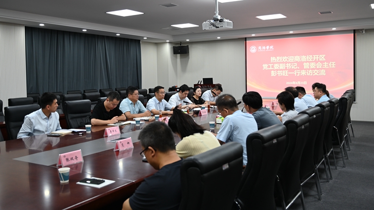 王新军对彭书旺一行莅临学校表示诚挚欢迎,对商洛经开区批准建设以来取得的成绩表示祝贺,他指出,商洛经开区立足禀赋优势,创新引才用才政策,谋准产业定位,推动企业提质增效,成功通过省级认定,是科技创新驱动发展新质生产力的重要载体。他简要介绍了威尼斯办学定位、特色与办学成果,重点介绍了《8797威尼斯老品牌服务商洛高质量发展50条措施》的落实情况及取得成效。他表示,学校将深刻学习领会党的二十届三中全会精神,自觉融入和服务商洛高质量发展大局,持续深化“三项改革”,深度融入秦创原创新驱动平台,凭借创新政策和优质平台推进科技成果转化。希望双方以此次合作交流为契机,推动产学研用深度融合,提升科研成果转化实效,搭建“人才共享、资源共用、科研共建”的沟通交流平台,共同推进区域高质量发展。