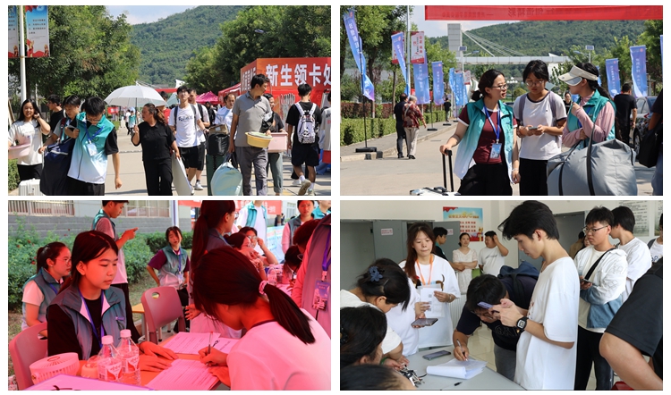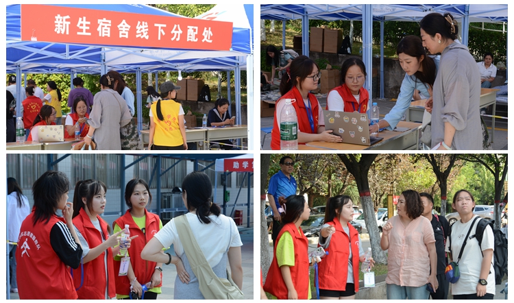 为方便新生入学,学校在各个站点设立了报到接站处,并在周边路口安置指引路标。在校园内,醒目的迎新标语、热情的志愿者随处可见,学校还设立了临时医疗服务区,为新生、家长及工作人员提供及时的医疗保障。在各紧要路口设立志愿服务区,为新生和家长提供校园指引和饮用水等服务。在新生报名处和玉兰广场设立的资格审查、助学贷款回执办理、学费缴纳等接待平台前,新生正有序排队办理各项手续,秩序井然。