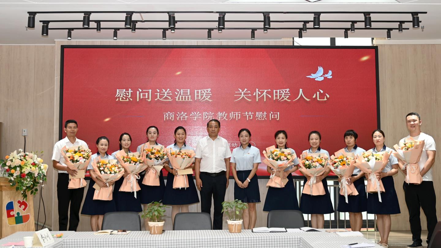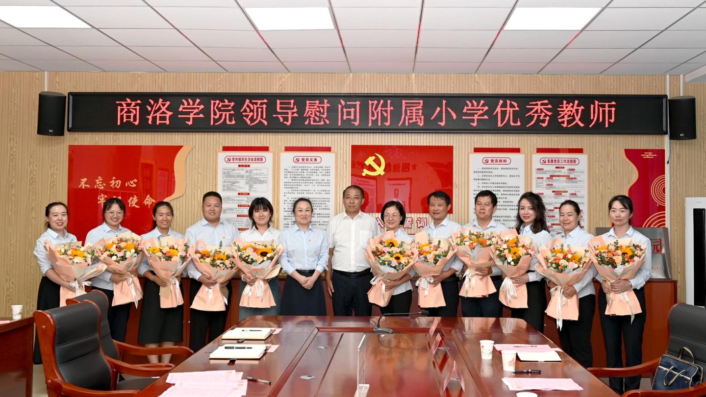 王新军向支持商州教育发展的南京支教教师、附属小学和附属幼儿园优秀教师代表送上鲜花和祝福,并合影留念。