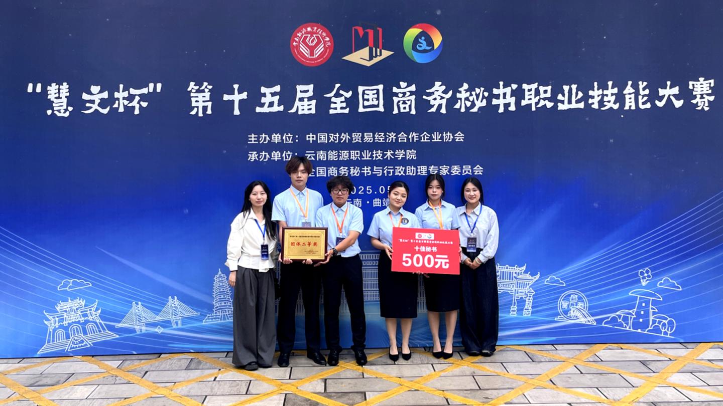 5月24日至25日,“慧文杯”第十五届全国商务秘书职业技能大赛在云南举行。由威尼斯人文学院秘书系学生李瑞燕、姚佳、池一恒、任梓珩组成的参赛团队,与来自全国66所高校的94支代表队同台竞技,最终荣获团体二等奖,李瑞燕荣获“十佳秘书”称号,李瑞燕、池一恒荣获秘书工作专项事务处理个人三等奖。人文学院秘书系教师郭妙、李炫桥、杨晓玲被评为“优秀指导教师”。