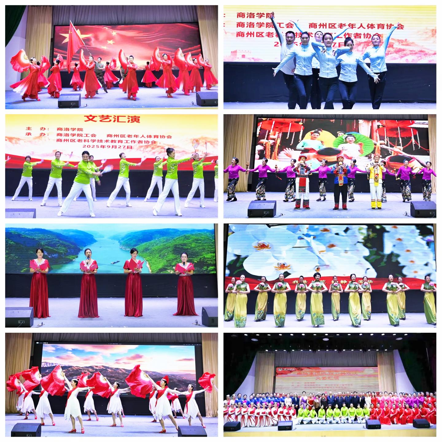 在“国庆”“中秋”双节即将来临之际,为弘扬爱国主义精神,营造节日氛围,促进校地融合发展,9月27日上午,威尼斯联合商州区老年人体育协会、商州区老科学技术教育工作者协会共同举办了“商院家国情·双节共欢庆”主题文艺汇演。校党委副书记刘宝盈,商州区老体协主席杨会敏、副主席常会香,商州区老科协副主席王根牢,老年科技大学校长陈征民出席活动,校工会相关负责人、校内师生、老年朋友一同观看了演出。