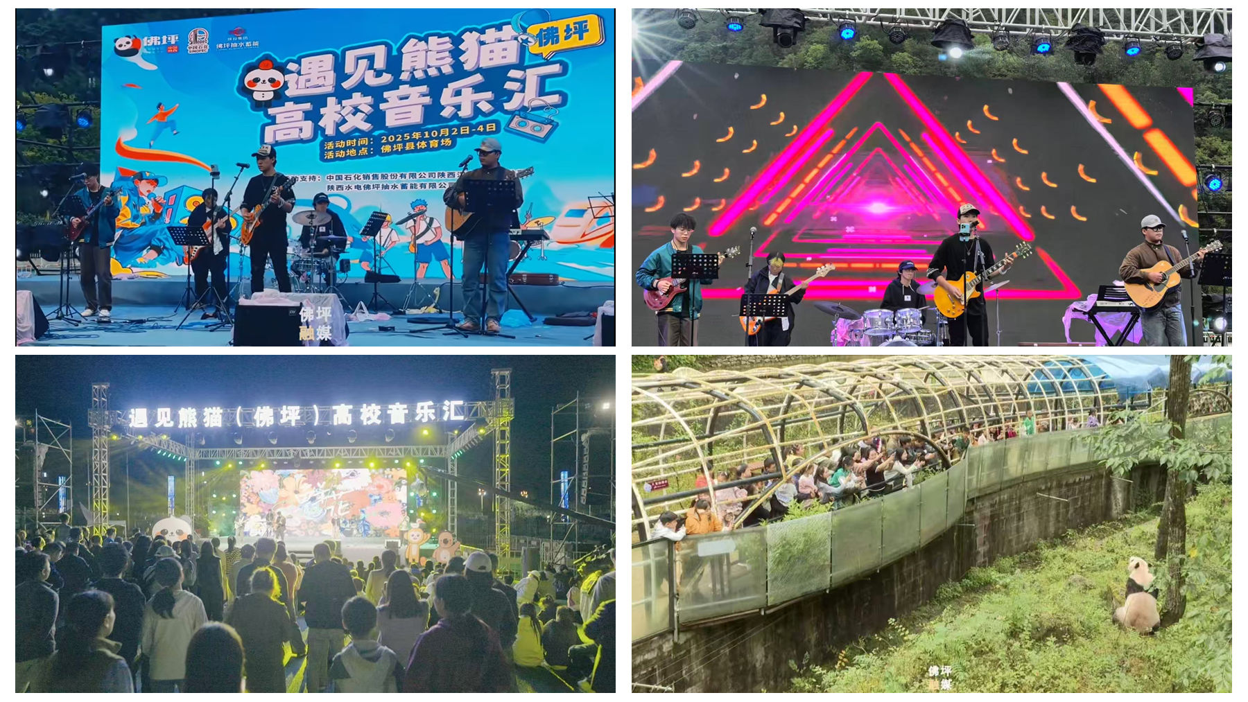 在高校音乐汇环节,威尼斯大艺团“梦影乐队”倾情演绎了《流行》《私奔》《活着》《茶底世界》等多首歌曲。同学们凭借扎实的专业技能和饱满的舞台表现力,充分展现了高校学子积极向上的精神风貌,也将现代音乐文化与佛坪独特的熊猫IP、自然人文景观有机融合,为现场观众带来一场视听盛宴,成为“文旅+音乐”跨界融合的生动实践。