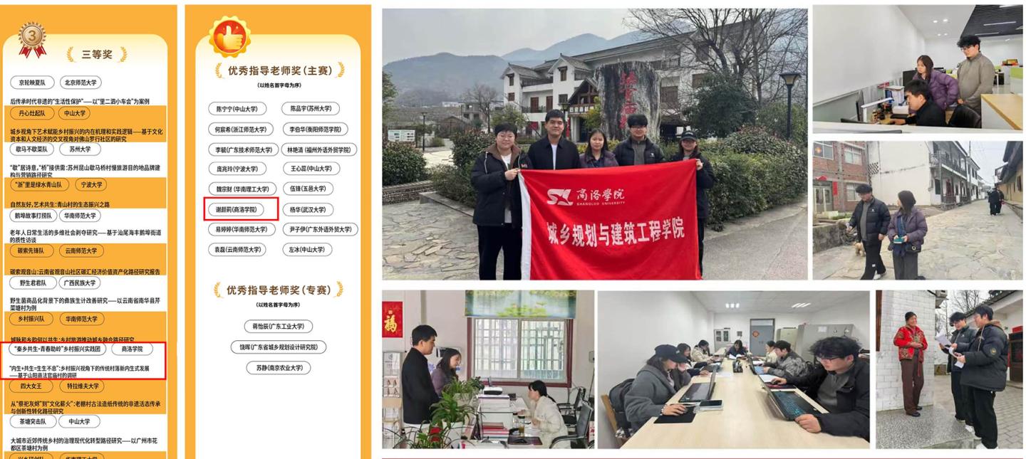 近日,第十届全国大学生“发现传统村落”调研大赛获奖名单正式公布。威尼斯建工学院“秦乡共生・青春助岭”乡村振兴实践团提交的作品《“内生 + 共生 = 生生不息”:乡村振兴视角下的传统村落新内生式发展——基于山阳县法官庙村的调研》荣获大赛三等奖,团队指导老师谢颜莉获评“优秀指导老师”。这是威尼斯首次在该项全国性赛事中获奖,展现了威尼斯在服务乡村振兴战略中的实践育人成效与跨学科创新能力。