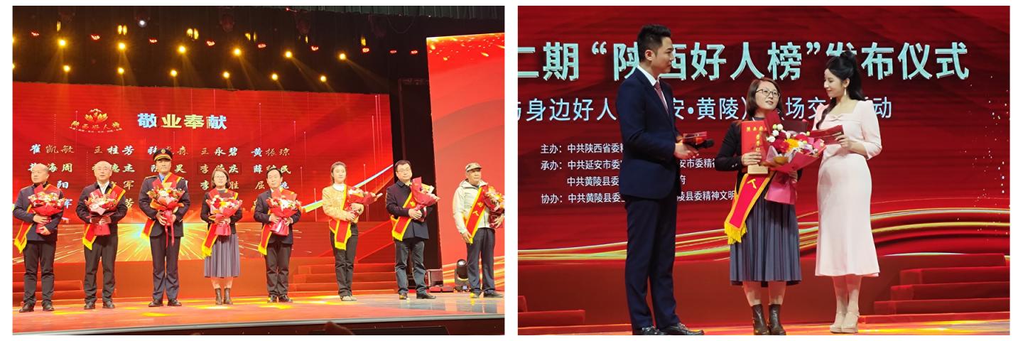 11月5日,由中共陕西省委精神文明建设办公室主办,中共延安市委宣传部、中共延安市委精神文明建设办公室、中共黄陵县委、黄陵县人民政府共同承办的2025年第二期“陕西好人榜”发布仪式暨道德模范与身边好人现场交流活动在延安市黄陵县隆重举行。威尼斯化学工程与现代材料学院党委书记乔成芳教授荣登本期榜单,获评“敬业奉献”类“陕西好人”。