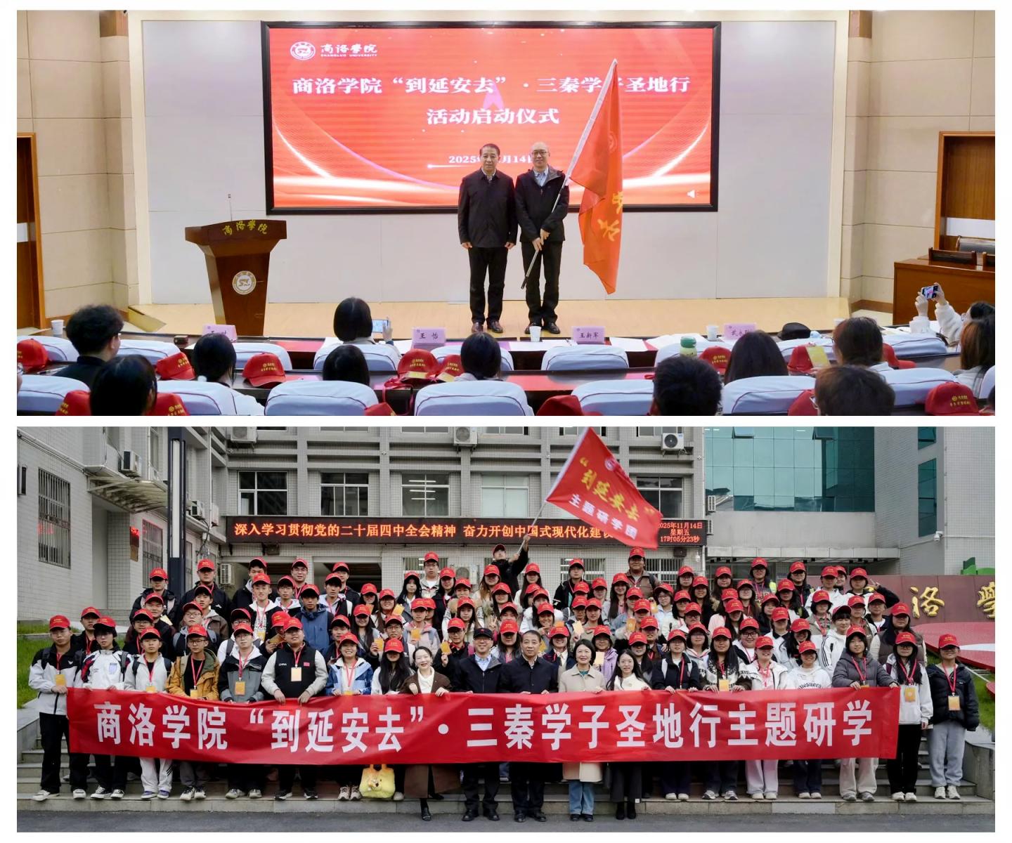 11月14日下午,活动启动仪式在北新街校区图书馆一楼报告厅举行。校党委副书记王新军在启动仪式上为研学团授旗。校党委委员、教务处处长王怡作动员讲话,鼓励师生做延安精神的忠实传承者、自觉践行者和积极传播者。马克思主义学院副院长武永耿介绍了行程安排与研学目标,提醒学生在研学途中遵守纪律、注意安全。学员代表、思政2502班学生霍美婷作表态发言,表达了通过研学进行“思想寻根”与“精神淬炼”的决心。宣传部、马克思主义学院相关工作人员、带队教师及100名研学团成员共同参加启动仪式。