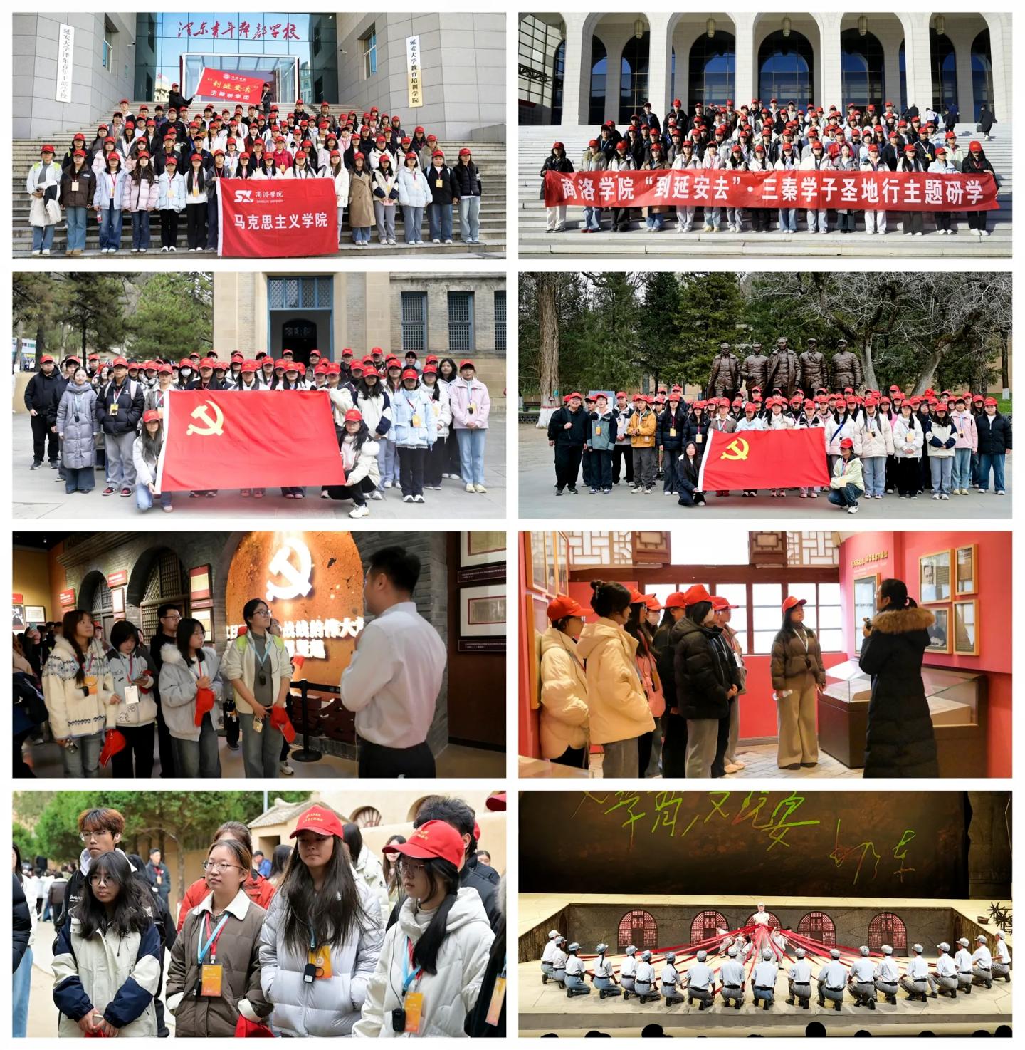抵达延安后,师生学员们先后前往延安革命纪念馆、杨家岭、枣园、凤凰山、鲁迅艺术文学院等革命旧址参观学习,集体观看了红色历史舞台剧《延安保育院》,通过现场教学、实物观摩和情景体验,在历史现场追溯红色记忆,感悟共产党人不变的初心和使命。