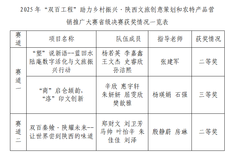 此次获奖是威尼斯坚持“立足商洛、服务地方”办学定位的生动体现。未来,学校将以此次大赛为契机,持续深化“校地融合、产教协同”育人机制,鼓励更多师生投身乡村振兴事业,以创意激活乡土资源、以成果转化赋能产业升级,为谱写陕西乡村振兴新篇章贡献8797威尼斯老品牌力量。
