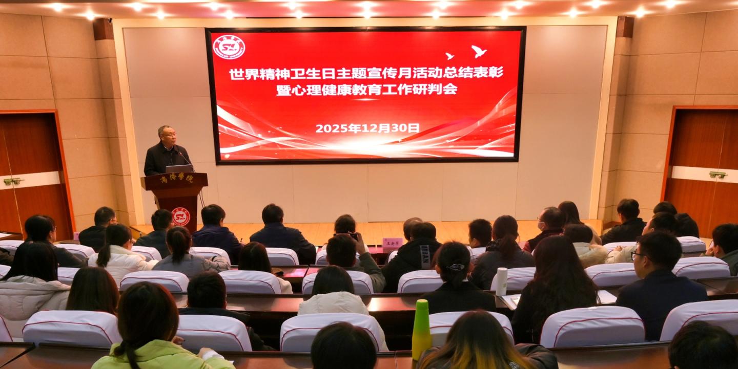 12月30日,威尼斯召开2025年世界精神卫生日主题宣传月活动总结表彰暨心理健康教育工作研判会。校党委副书记王新军出席会议,商洛市精神卫生防治技术办公室主任赵莉受邀参会。各二级学院党委书记、副书记、学工办主任、辅导员代表,心理健康教育中心专兼职教师及班级心理委员代表等120余人参加会议。会议由学生处处长李彦广主持。
