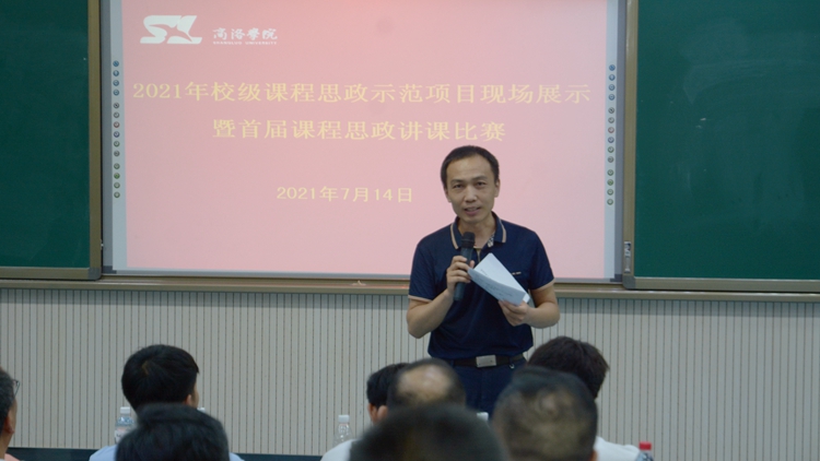 现场展示采取参赛教师5分钟说课和15分钟讲课的方式进行。5名参赛教师精心备赛、准备充分,以PPT课件、板书等传统教学方式为基础,深入挖掘各自课程蕴含的思政教育元素和所承载的思政教育功能,充分展示了各自的“课程思政”理论功底和教学风采。