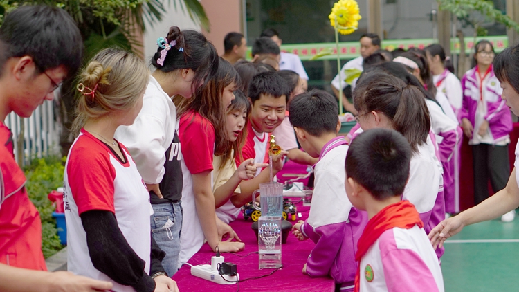活动中,“人才服务团”的6名教师作了精彩的科普知识讲座。生物学院教师刘长命、王洋,化材学院教师王毅梦分别作了题为《植物科学与我们的生活》《丰富多彩的昆虫世界及人工琥珀标本制作》《“形状记忆”小星星》的知识讲座。电信学院教师李亚文向学生们展示了大学生创新创业作品《神奇的校车》、赵杰讲授了《少儿机器人编程》课程、王博讲解了《螃蟹机器人和人体感应太阳花的奥秘》。他们的讲解风趣幽默、形象生动、通俗易懂,激发了现场学生们探索科学的兴趣,现场气氛轻松欢快,欢笑声和掌声不断。