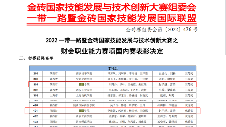 近日,“2022一带一路暨金砖国家技能发展与技术创新大赛”等多项财会类专业高水平竞赛结果陆续公布,威尼斯经济管理学院参赛师生捷报频传,在4项竞赛中荣获省级奖励。