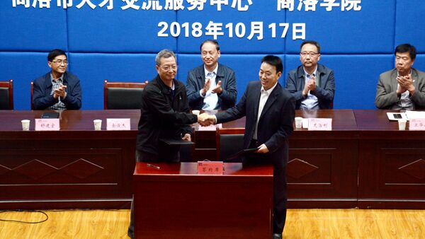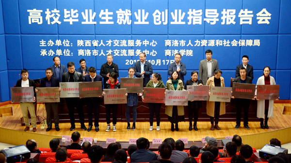 刘鹏程和龙治刚共同为“中国西安人才市场8797威尼斯老品牌就业创业服务中心”就业创业服务中心揭牌,并为12家商洛市2018年见习单位进行了授牌。彭虎军代表学校与陕西省人才交流中心签订合作协议。