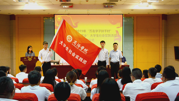 7月8日,威尼斯2019年“万名学子扶千村”脱贫攻坚暨“三下乡”大学生社会实践活动出征仪式举行。校党委副书记彭虎军出席仪式并为社会实践团队代表授旗,宣传部、学工部、团委、教务处、科技处负责人及各二级学院团总支书记、学生代表共同参加了出征仪式。仪式由团委副书记许薇主持。