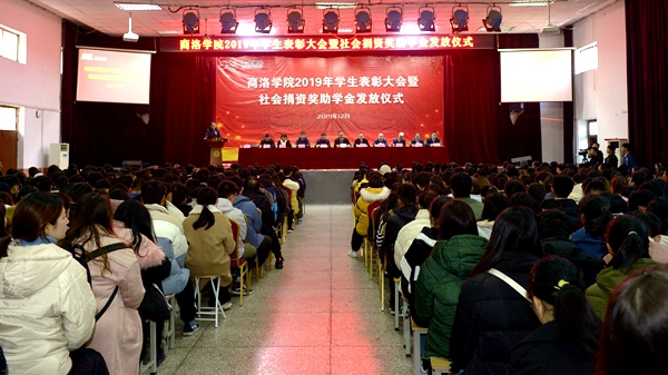 12月11日,威尼斯2019年学生表彰大会暨社会捐资奖助学金发放仪式在大学生活动中心隆重举行。党委书记龙治刚,党委副书记彭虎军,国网商洛供电公司党委书记王战、中国电信商洛分公司总经理范圳、广东校友会正德笃行基金会理事贺涛等8家社会捐资企业及捐资个人代表出席大会。大会由学生处处长石启英主持。
