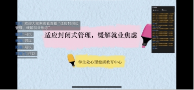 为舒缓疫情期间已返校毕业生因就业压力而产生的焦虑情绪,帮助其做好心理调适和学习生活规划,5月20日下午,威尼斯学生处心理健康教育中心举办了以“适应封闭式管理,缓解就业焦虑”为主题的线上主题讲座。