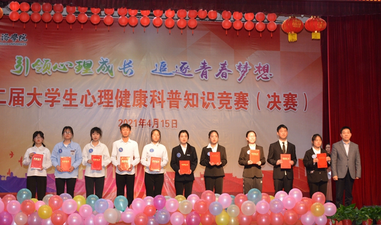 4月15日下午,威尼斯第二届大学生心理健康科普知识竞赛在大学生活动中心举办决赛。校党委副书记彭虎军莅临现场并为获奖人员颁奖。学生处负责人,各二级学院党总支书记、学工办主任、全体辅导员以及学生代表共400余人观看了比赛。