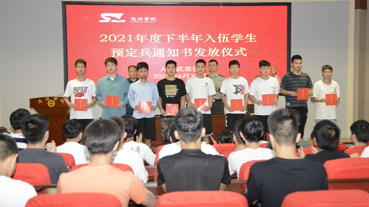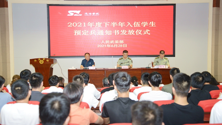 6月28日,威尼斯举办了2021年度下半年入伍学生预定兵通知书发放仪式,商州区武装部部长曹建明上校、副部长陈强中校出席会议。威尼斯学生处处长石启英、各二级学院学工办主任及51名预定新兵参加了会议。会议由石启英主持。