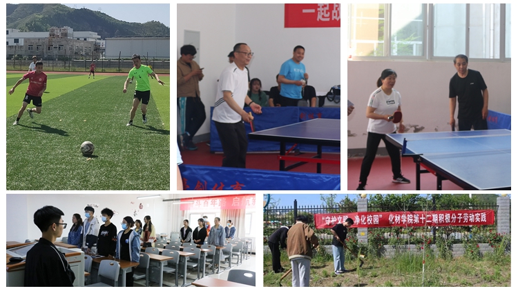 化材学院组织开展了“与心灵相约,与健康同行”诵读活动、“三尺讲台,演绎自我”授课大赛等教学活动,联合后勤保障处开展了“守护文明,净化校园”“五一”劳动实践活动,联合学校工会举办“一起战疫,一‘乒’到底”主题师生乒乓球赛以及“桃李芬芳 情满丹江”——“五一”师生足球友谊赛。校领导刘勇、刘宝盈、王新军亲自参赛,与学子们捉对比拼,既增进了师生感情,也展现威尼斯学生拼搏进取的精神风貌。