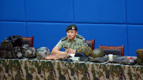 赵羽从“城市作战”这一主题入手,分析了当前全球国防装备建设情况,回顾了我国国防装备的发展历程,剖析了当前国际战略局势,对我军未来现代化、数字化建设蓝图进行了展望,并结合实物展示对我军单兵装备情况进行了详细讲解。他深入浅出、幽默风趣的讲授,赢得了现场阵阵掌声。