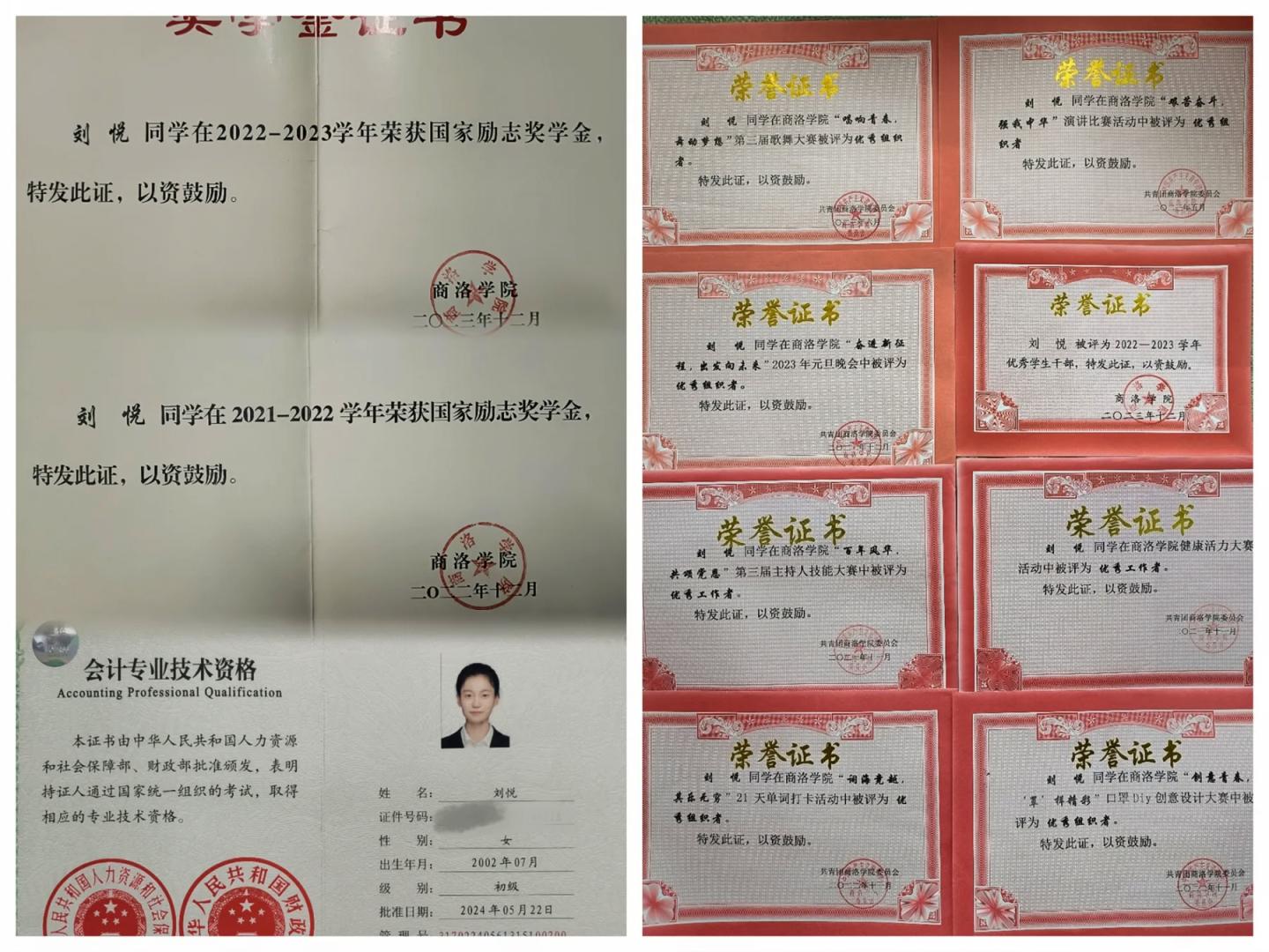 她的书桌见证着广阔的求知版图:初级会计资格证书、银行从业资格证书、雅思5.5分和英语六级成绩单……每一张证书都是对“无捷径,唯深耕”信念的践行。她深谙各类考试备考之道:1-2个月的科学规划,前期筑牢知识根基,后期真题锤炼见真章。这些硬核实力,为她奠定了求学求知的坚实基石。