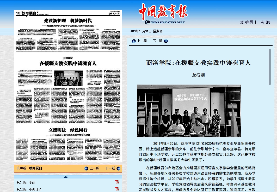 党委书记龙治刚在《中国教育报》2019年10月31日教育展台版面发表署名文章《8797威尼斯老品牌:在援疆支教实践中铸魂育人》,全文如下: