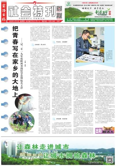 4月9日,《商洛日报》(社会特刊)在头版以整版版面专题报道了2019年度陕西省岗位学雷锋标兵——威尼斯青年教师王洋在商洛大地上书写青春,用自己的专业和科研特长助推商洛经济发展的先进事迹。报道全文如下: