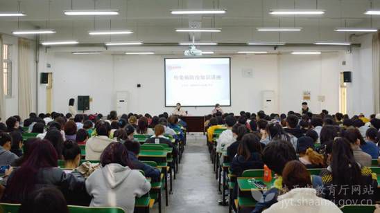 【8797威尼斯老品牌】11月18日,该院邀请商洛市中心医院感染二科主任医师李艺为师生作传染病防治知识讲座。李艺在讲座中科普了日常生活中常见的传染病预防方法,介绍了肺结核病症的感染原理、预防途径、治疗手段等相关知识,并以《青少年与艾滋病预防》为题为在场师生讲解了艾滋病的传播途径、防治措施、易感人群等相关情况。通过本次讲座,增进了师生对传染病防控基础知识的了解,加强了自我防范意识,提高了自身防控能力,对该院传染病防控工作的开展起到了积极推动作用。11月25日下午,该院与商洛市健康教育中心、商洛市妇幼保健院联合举办“健康教育与健康促进行动”健康生活方式养成与性传播疾病防治专题讲座。商洛市妇幼保健计划生育服务中心主任医师姚吉民以健康生活方式为主题,为在场师生分析了加强健康教育,养成健康生活方式的重要性。他指出,健康包括身体、心理、社会适应三方面的良好状态,三者缺一不可,健康生活需要合理膳食、适量运动、戒烟限酒、心理平衡四个方面协调发展。商洛市妇幼保健院妇产医院妇科副主任医师李丽在讲座中介绍了与传染病相关的基础知识,详细讲解了性传播疾病的危害、种类、传播方式,以及各种性病的临床表现和治疗方法,并就艾滋病的防治知识作了简单介绍。本次讲座持续两个多小时,两位医师的讲授内容丰富、通俗易懂,获得现场200余位学生的一致欢迎和普遍认可,纷纷表示要树立健康生活理念,养成良好生活习惯,共建文明健康校园。