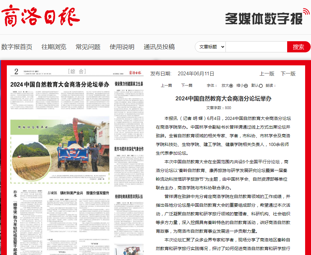 商洛日报:2024中国自然教育大会商洛分论坛举办