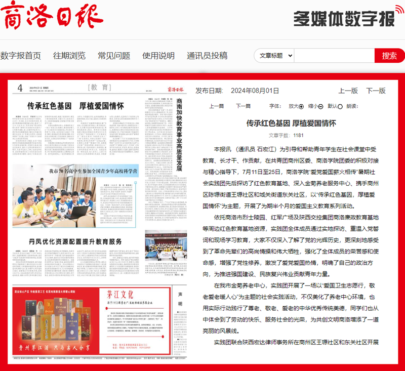 商洛日报:传承红色基因 厚植爱国情怀