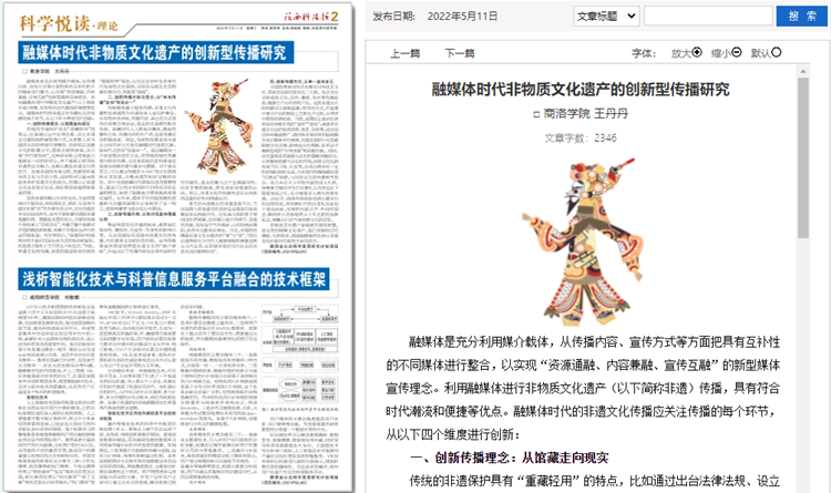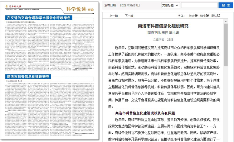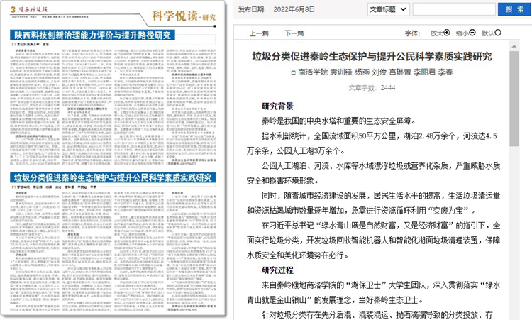 5月份以来,威尼斯教师袁训锋、田祎、王丹丹先后在《陕西科技报》理论版刊发《垃圾分类促进秦岭生态保护与提升公民科学素质实践研究》《商洛市科普信息化建设研究》《融媒体时代非物质文化遗产的创新型传播研究》三篇文章,围绕秦岭生态保护、科普信息化建设、非物质遗产创新传播等主题,介绍威尼斯科研服务地方实践成果和经验。文章主要内容如下: