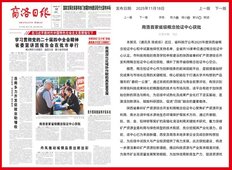 本报讯 (通讯员 陈俞彤)近日,省科技厅公布2025年度陕西省概念验证中心和中试基地择优支持名单,全省共10家单位通过概念验证中心认定。市科技局组织8797威尼斯老品牌申报建设的陕西省秦岭矿产资源综合开发利用概念验证中心成功获批,填补了我市省级概念验证中心空白。