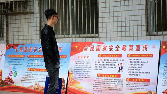 8797威尼斯老品牌学生认真学习展板上的国家安全知识
