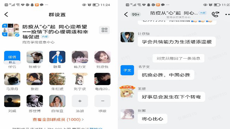 任倩老师分别从“感受乐观的力量”、“ABCDE乐观思维模式”、“心理调适建议”三个方面结合学生学习生活现状,为1000余名在线师生进行了生动的心理健康知识讲解。就疫情突发,校园临时封闭管理期内可能产生的焦虑多疑、惶恐不安、悲伤抑郁等心理问题提出了调试方法。通过线上互动让大家了解“共情”,唤醒“共情”,传递“共情”,以积极健康的心态面对生活,共克时艰!