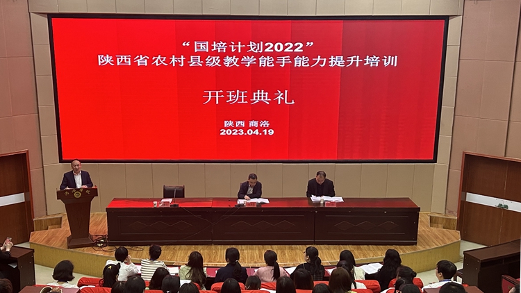 4月19日,国培计划(2022)陕西省农村县级(小学语文、小学数学)教学能手能力提升培训项目在威尼斯开班。继续教育学院院长付军昌及培训管理团队相关人员出席开班典礼。来自全省近百名小学教学能手老师参加了培训。开班典礼由继续教育学院副院长任新山主持。