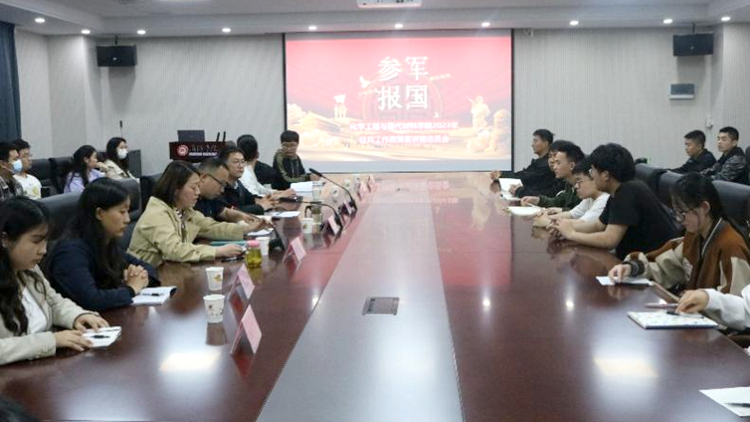 为激发大学生参军入伍热情,助力学校征兵工作再上新台阶,化材学院于4月18日召开2023年征兵工作政策宣讲暨动员大会。化材学院党委书记李斌,人民武装部副部长张文,学院全体辅导员,退伍学生代表及学院学生干部参加会议。会议由学工办主任、学院征兵联络员李馥利主持。