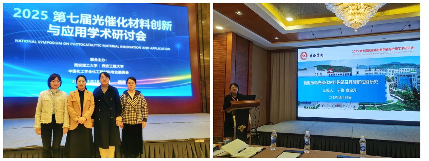 3 月 28 日至 30 日,由西安理工大学、西安工程大学、中国化工学会化工新材料专业委员会联合主办的第七届光催化材料创新与应用学术研讨会在陕西西安召开。化材学院院长曹宝月及学院教师王丹、于艳、徐珊、马薇参加会议,于艳博士代表团队作了题为《新型压电光催化材料构筑及其降解性能研究》的学术报告,展示了团队在压电光催化领域的研究成果。
