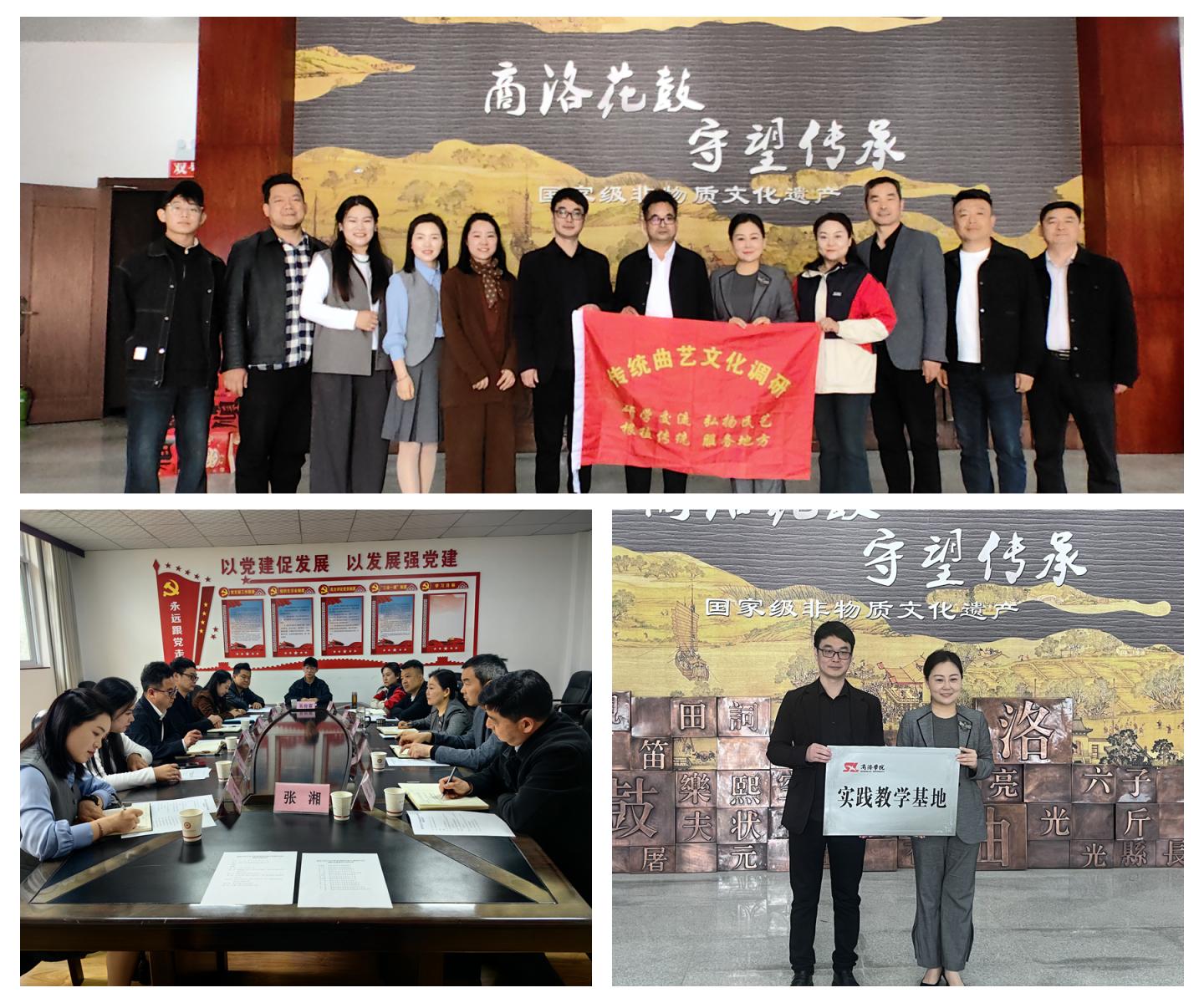 4月9日,艺术学院师生走进商洛市地方戏曲研究院开展人才培养专题调研交流活动,与商洛市地方戏曲研究院签署《实践教学基地合作协议》并授牌。