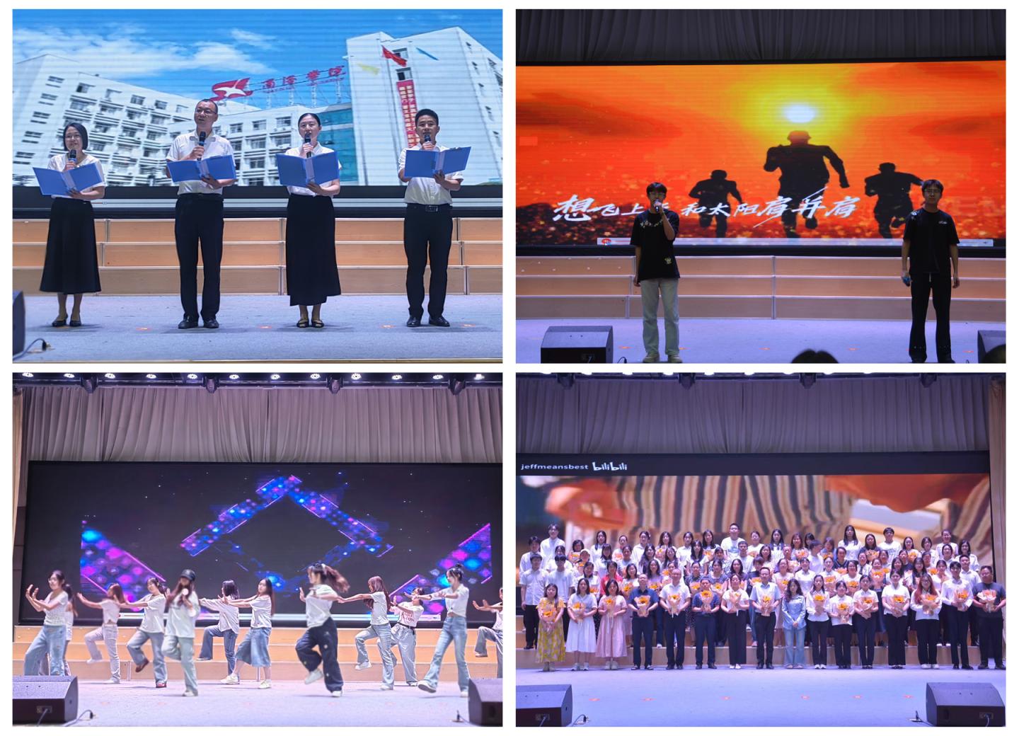 表彰大会上,王刚、赵萍君、刘玉婷、景宇四位老师通过朗诵诗歌《鹤城的风,吹过你们的梦》,表达对毕业生的依依不舍与深情祝福。在校同学带来的歌曲《我相信》、舞蹈《爱出发》释放了无限的青春活力,表达了对毕业学长学姐们的美好祝愿。受表彰的同学为全体教师献上了鲜花,表达他们对母校和老师的祝福与感恩之情。