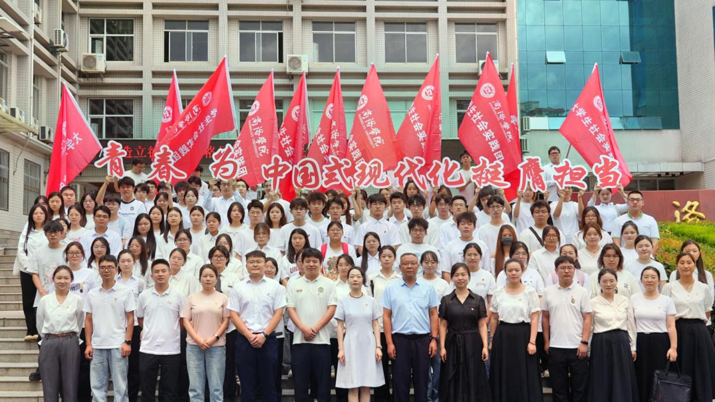 出征仪式上,电信学院辅导员张艺婕、人文学院学生伊萌分别代表指导教师、实践团队成员表态发言。全体队员在实践团队代表权欣妍的带领下进行了出征宣誓。