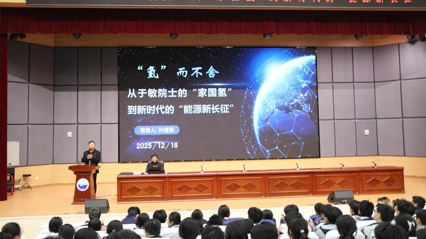 12月18日下午,陕西省商洛中学举行科技副校长聘任仪式,化材学院教师孙强强受聘该职务,并以《氢而不舍:从于敏院士的“家国氢”到新时代的“能源新长征”》为题作专题科技报告。